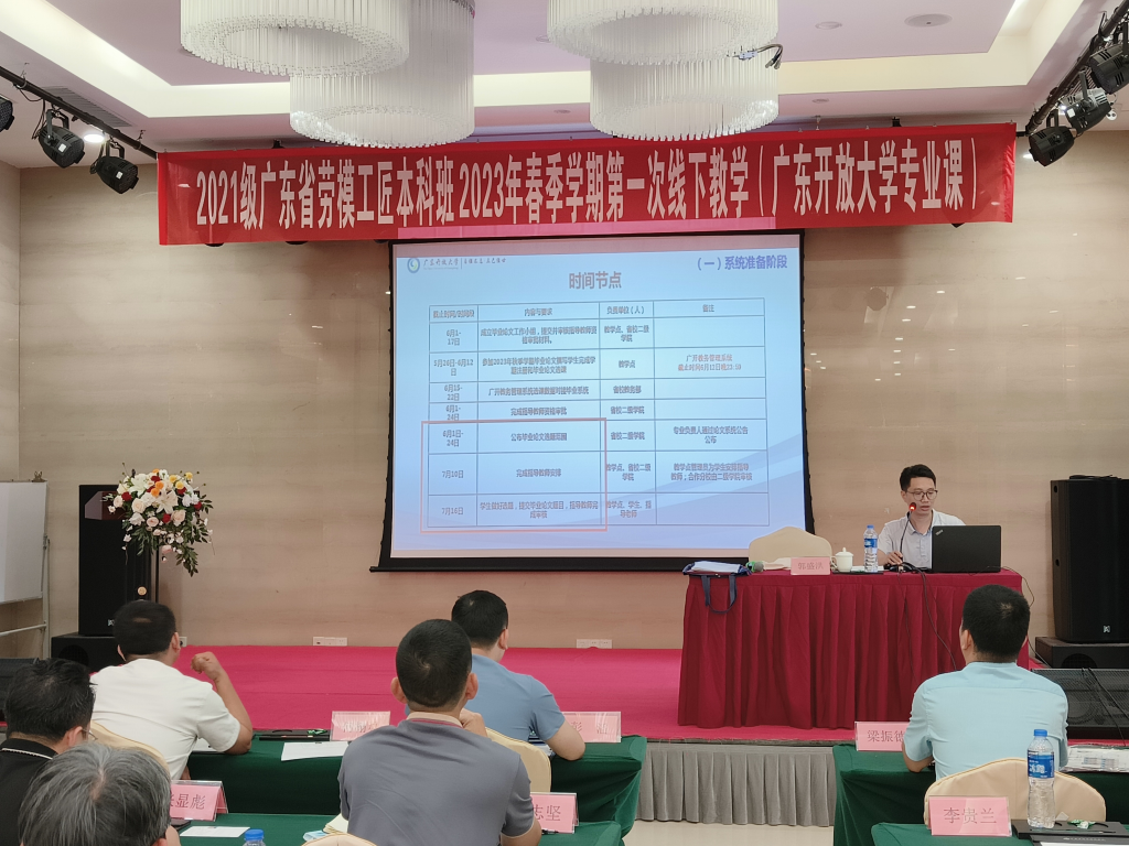 除了公共课学习之外,本次线下教学活动中国劳动关系学院、华南师范大学和广东开放大学在专业课课程方面给予了优秀的师资力量的支持。中国劳动关系学院劳模学院安排了胡楠老师为2021级广东省劳模工匠本科班中国劳动关系学院学员进行《组织行为学》授课;广东开放大学安排郭盛洪副教授为2021级广东省劳模工匠本科班广东开放大学学员进行《《质量认证认可》讲座。