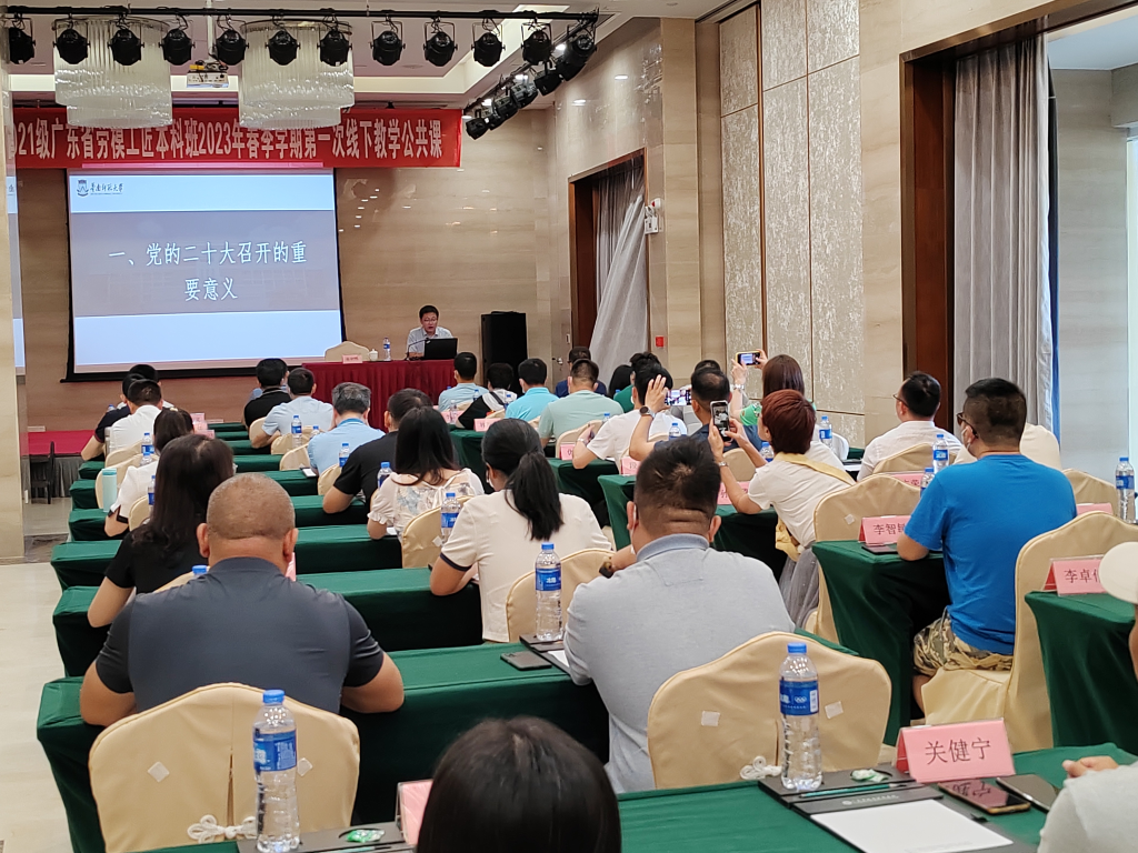 为了对于劳模工匠群体在劳模工匠本科班的学历提升学习过程中,进行更加深化的思想引领,本次线下教学活动公共课授课邀请到了华南师范大学马克思主义学院蒋积伟教授,蒋积伟教授为2020级和2021级广东省劳模工匠本科班学员在广东劳模疗休养基地J栋多功能厅进行授课——《奋进新征程的政治宣言和行动纲领——党的二十大精神解读》。蒋教授从三个方面:(1)党的二十大召开的重要意义;(2)过去五年的工作和新时代十年的伟大变革;(3)开辟马克思主义中国化时代化新境界。进行解读了党的二十大精神,解读“五个牢牢把握”:要牢牢把握过去5年工作和新时代10年伟大变革的重大意义,牢牢把握新时代中国特色社会主义思想的世界观和方法论,牢牢把握以中国式现代化推进中华民族伟大复兴的使命任务,牢牢把握以伟大自我革命引领伟大社会革命的重要要求,牢牢把握团结奋斗的时代要求。讲清楚党的二十大的主题;讲清楚过去5年的工作和新时代10年的伟大变革;讲清楚开辟马克思主义中国化时代化新境界;讲清楚以中国式现代化全面推进中华民族伟大复兴;讲清楚对党和国家事业的新部署新要求;讲清楚加强党的全面领导、坚定不移推进全面从严治党的部署和要求;讲清楚以顽强斗争应对风险挑战的要求。