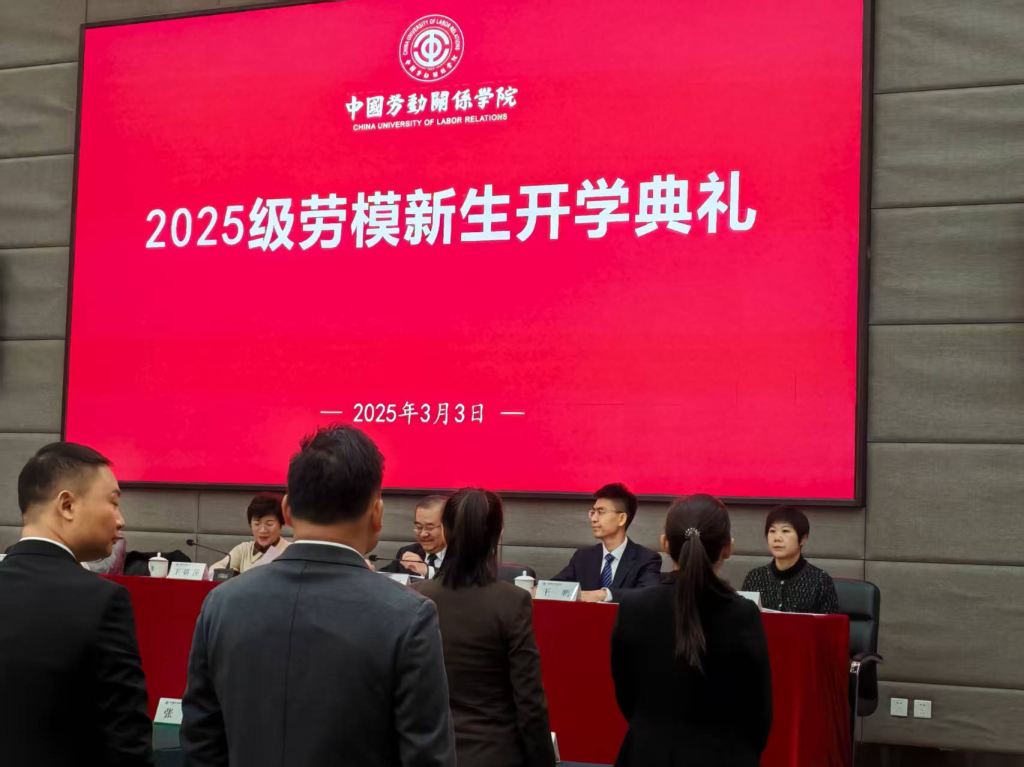 3月3日上午,2024级广东省劳模工匠本科班(中劳班))新生开学典礼在北京中国劳动关系学院致远楼909教室举行。广东南华工商职业学院党委委员、纪委书记黄一梅、广东工匠学院副院长凌红受学校党委委托出席开学典礼,中国劳动关系学院劳模新生、教师代表等近百人参加典礼。