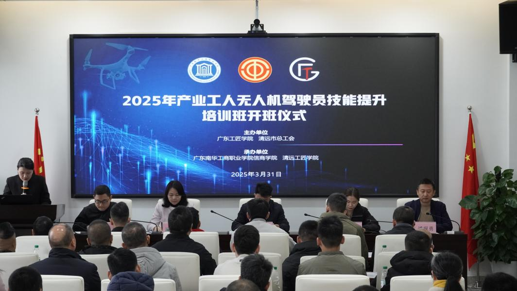 2025年3月31日至4月2日,由广东工匠学院、清远市总工会主办,广东南华工商职业学院信商学院、清远工匠学院承办的2025年产业工人无人机驾驶员技能提升培训班在广东南华工商职业学院清远校区顺利开班。清远市总工会党组成员、副主席巫伯池、广东南华工商职业学院副校长王荣光出席开班仪式并致辞。