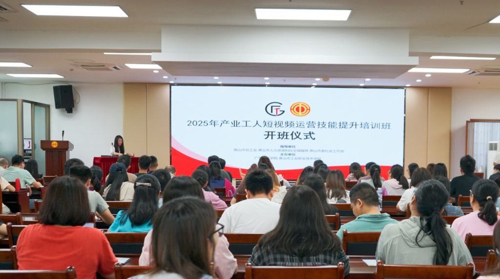 5月21-22日,在佛山市总工会、佛山市人力资源社会保障局和佛山市社会工作部的指导下,广东工匠学院和佛山市工会职业技术学校联合举办的2025年佛山产业工人短视频运营技能提升培训班顺利开班。佛山市总工会机关党委委员、佛山市工会职业技术学校党支部书记黎嘉浩、广东工匠学院副院长(主持工作)凌红出席开班仪式。开班仪式由佛山市工会职业技术学校副校长张胜主持。本次培训吸引了200余名产业工人报名参训。