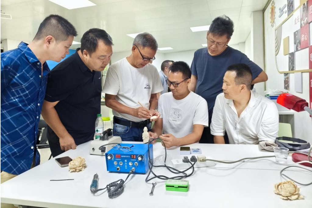 作为全国闻名的猛犸牙雕产业聚集地,斗门区汇聚了100多家相关商户,近3000名从业人员。本次研修班是双方贯彻落实“双百行动”的重要举措,旨在立足斗门、服务斗门,为当地牙雕产业发展提供人才支撑。课程设置了理论讲解、游学走访、实操指导和座谈研讨等环节,通过“理论+实践+交流”的混合教学模式,激发学员创作灵感,促进思想碰撞。