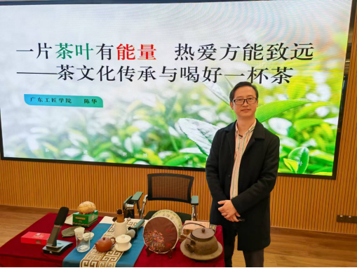 12月28日,广东工匠学院陈华老师受广州市员村工人文化宫邀请,参加广东省职工之家揭牌暨粤港澳职工迎新年交流活动,为参加活动的粤港澳职工授课。课程主题为:一片茶叶有能量 热爱方能致远。