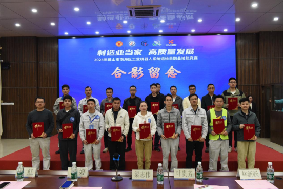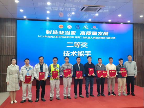 12月1日,由广东工匠学院、佛山市南海区总工会、佛山市南海区教育局、佛山市南海区人力资源和社会保障局主办,中国教育工会佛山市南海区委员会、中国教育工会佛山市南海区信息技术学校委员会、广东汇博机器人技术有限公司工会委员会承办的2024年南海区职工劳动和技能比赛工业机器人系统运维员技能比赛圆满落幕。广东工匠学院执行副院长凌红、佛山市南海区人力资源和社会保障局副局长梁志伟、佛山市南海区信息技术学校副校长杨文康等单位领导和参赛选手80余人参加比赛颁奖仪式。