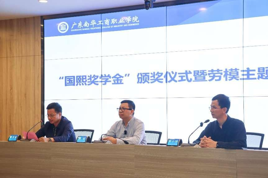 近日,“劳模工匠进校园”系列活动之一的“国熙奖学金”颁奖仪式在我校举行。全国劳动模范、全国五一劳动奖章获得者、享受国务院特殊津贴专家、南粤工匠、全国技术能手唐奇为获得奖学金的同学颁奖,并为260名师生作《中国陶瓷之美兼论工匠精神》的主题讲座。学校党委委员、广东工匠学院执行副院长、劳模教育学院院长黄玉良参加活动,讲座由学生处副处长、劳模教育学院执行副院长李小宁主持。