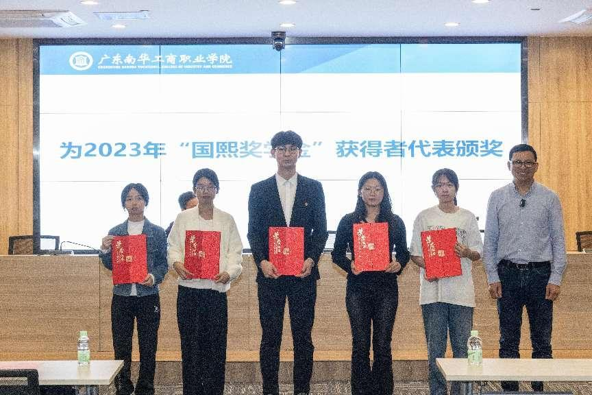 图:唐奇劳模为2023年国熙奖学金获得者颁奖