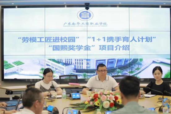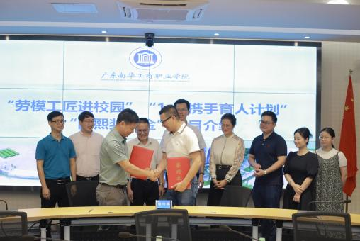 6月27 日,广东南华工商职业学院“国熙奖学金”签约仪式在清远校区圆满举行。全国劳动模范唐奇及团队,学校党委委员、广东工匠学院执行副院长、劳模教育学院院长黄玉良出席仪式,会议由学生处副处长、劳模教育学院执行副院长李小宁主持。