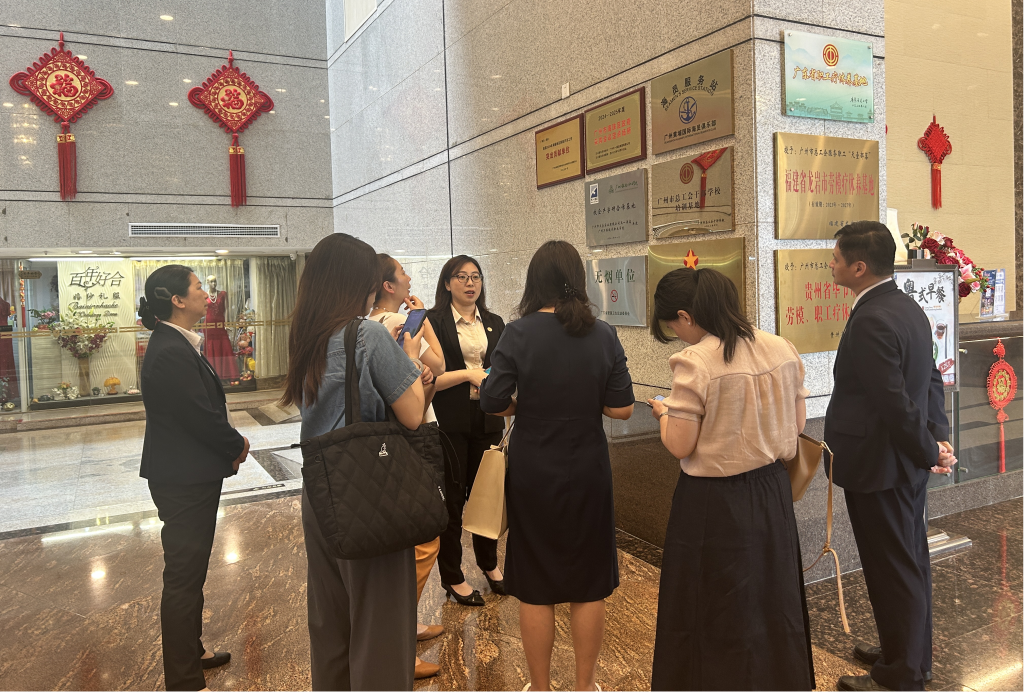为进一步拓展线下教学场地资源,满足日益增长的培训需求,5月6日下午,广东工匠学院副院长凌红率队前往广州市总工会下属企业天壹集团中天一酒店和江悦酒店两家单位进行考察调研。此次调研旨在深入了解两家酒店的软硬件设施和服务能力,广州天一酒店负责人魏文娜、江悦酒店负责人曾翠霞等参与接待。
