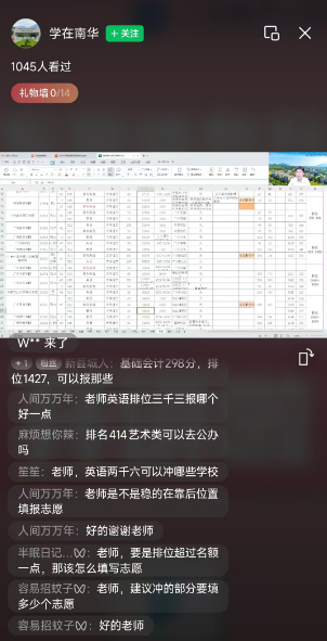 培训过程中,师生互动热烈,学生在评论区积极提问,涉及的问题广泛而具体,老师的耐心解答,让学生了解志愿填报流程与技巧,提升报考成功率。