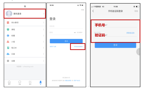 点击“请先登录”,选择 “手机验证码登录”方式,输入手机号后点击“获取验证码”,收到短信验证码后输入验证码,点击“登录”即可。
