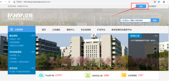 2.点击页面“登录”按钮,学生在登录后进入个人教学空间