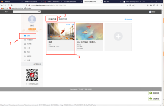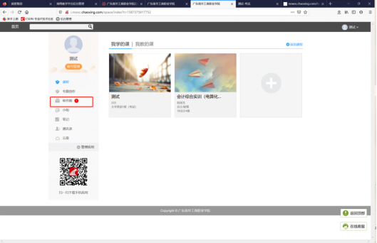 2. 进入课程后或者点击收件箱,都会收到对应的课程考试通知
