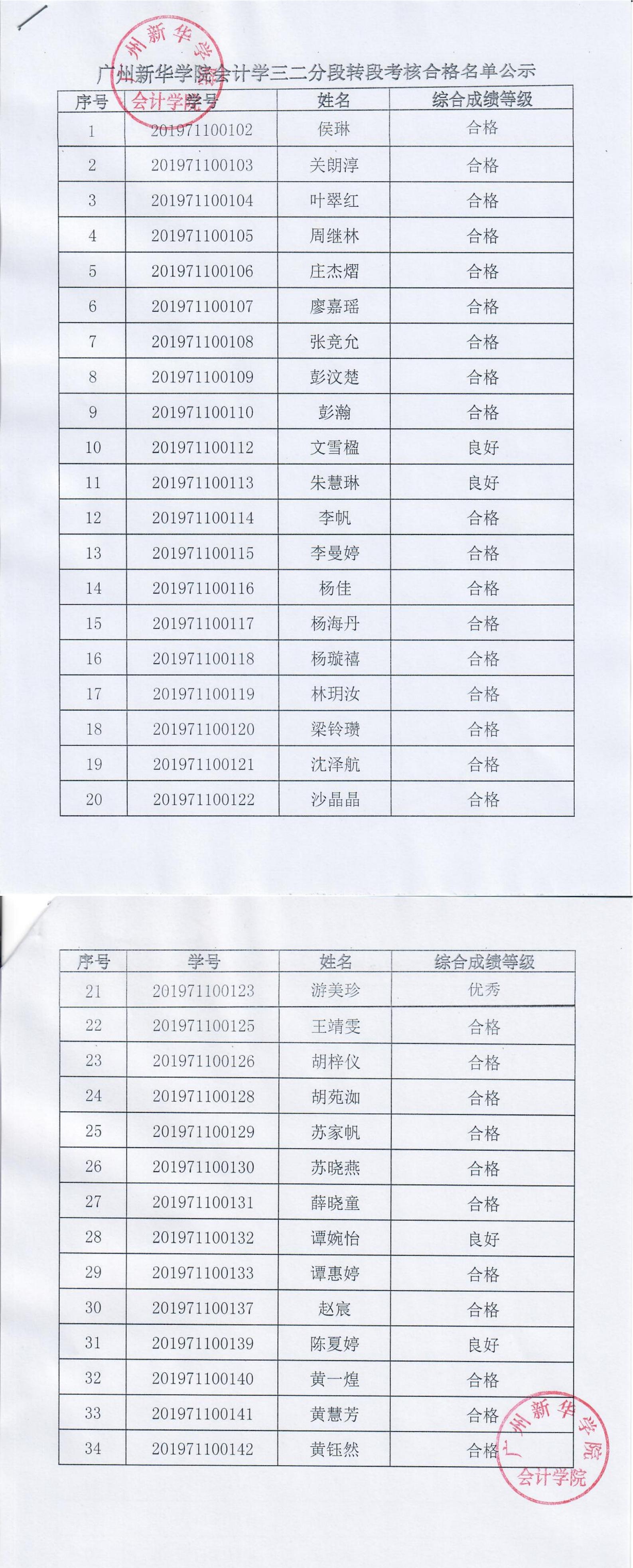 注:考核结果与广州新华学院同步公示5天,如有异议,请电话联系020-38251888、87065995。