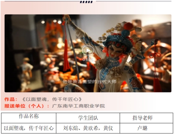 博雅教育学院选送的《以面塑魂,传千年匠心》获得三等奖,作品讲述非遗萧派面塑大师林道文通过面团捏塑的细腻工艺展现萧派面塑的独特魅力与文化筋骨。作品以端午节面塑粽子为例,体现老手艺的创新传承,并记录技艺走进校园的薪火延续,传递“掌心温度即文化温度”的社科思考。