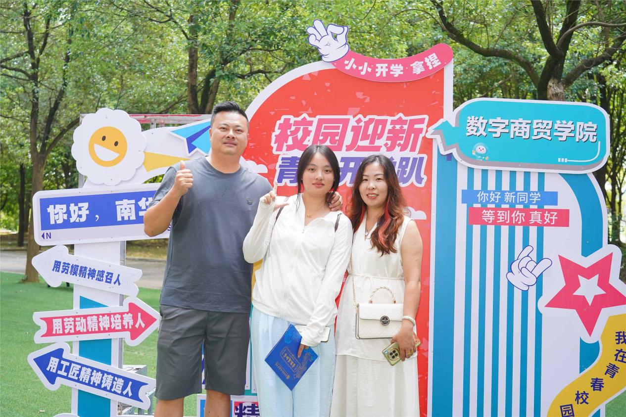 天鹅湖畔微风拂过,林荫道旁展板矗立,每一处景观、每一幅海报、每一帧画面,都在静静述说着南华的历史与文化。校团委精心布置的迎新展板、主题打卡墙等物料,吸引了大量新生及家长驻足。许多新生在这里留下与学校的第一张合影,写下大学阶段的第一句心声,以“南华人”的身份自此扬帆起航。此外,校团委邀请了省劳模张扬娣和王原鹏开展“劳模进校园”活动,以他们从事的茶产业为主题,向新生弘扬“三个精神”,上了一堂生动的入学教育课,将“百千万工程”的种子早早深植于心。校团委还精心策划了学生才艺展示小舞台,用欢乐的歌舞点燃迎新校园氛围。