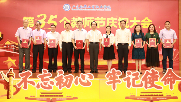 9月10日,学校隆重举行第35个教师节庆祝大会,和师生代表座谈会,全国总工会兼职副主席、全国劳模、我校客座教授高凤林出席本次表彰大会。为弘扬 “尊师重教”的风尚,传递“辛勤耕耘”的精神,我校特设“银龄奖”,表彰从教三十年以上的教师。郭记中、韦秀华、李中原、唐晓林、胡海鹏、胡家夏、童俊杰、谭红等十位老师获此殊荣,获得由1996届国际贸易专业校友,广州齐裕塑料制品有限公司总经理刘经戌赞助,由我校广东工匠学院客座教授佘慕君创作的奖品——鸿鹄,寓意鸿鹄(红壶谐音)之志,大有作为,30载风雨兼程,播洒光与爱,传道授业,桃李满天下。