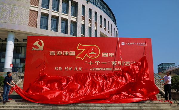 9月28日下午,我校举行庆祝中华人民共和国成立70周年大国工匠、师生书画摄影展暨高凤林大国工匠技能大师工作室揭牌仪式。全国总工会兼职副主席、全国劳模、大国工匠高凤林出席活动。