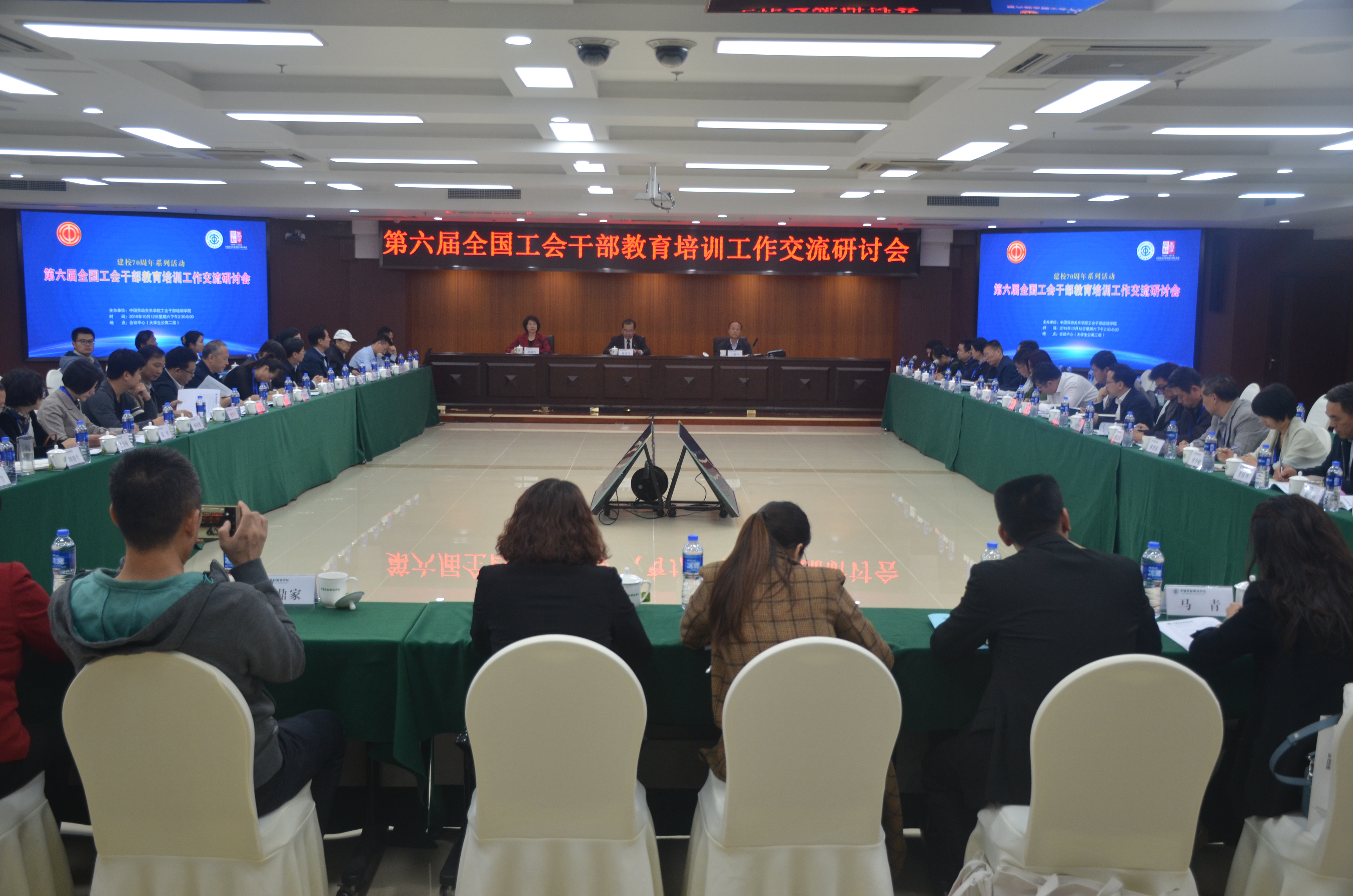 10月12日下午,学院举办第六届全国工会干部教育培训工作交流研讨会,中华全国总工会组织部副部长、一级巡视员王利中,中国劳动关系学院党委书记刘向兵、副校长刘丽红,我校郭记中副书记、王学真副校长以及全国其他19家工会干部院校领导及教师代表出席了研讨会。王利中副部长听取了各省工会院校的工作交流发言并作讲话,他在讲话中指出:面向新时代,工会干部培训工作要始终坚持正确政治方向、始终坚持实践问题导向、始终坚持工会价值取向、始终坚持培养目标定向,紧扣新时代新发展新需要,进一步推动工会干部教育培训事业取得新进步开创新局面,为党的工运事业和工会工作做出更大成绩。研讨会上各与会工会干部培训院校领导分别就开展工会干部教育培训工作的情况,以及对进一步加强工会干部教育培训从学科建设、师资队伍、课程建设等方面做了深入研讨交流。