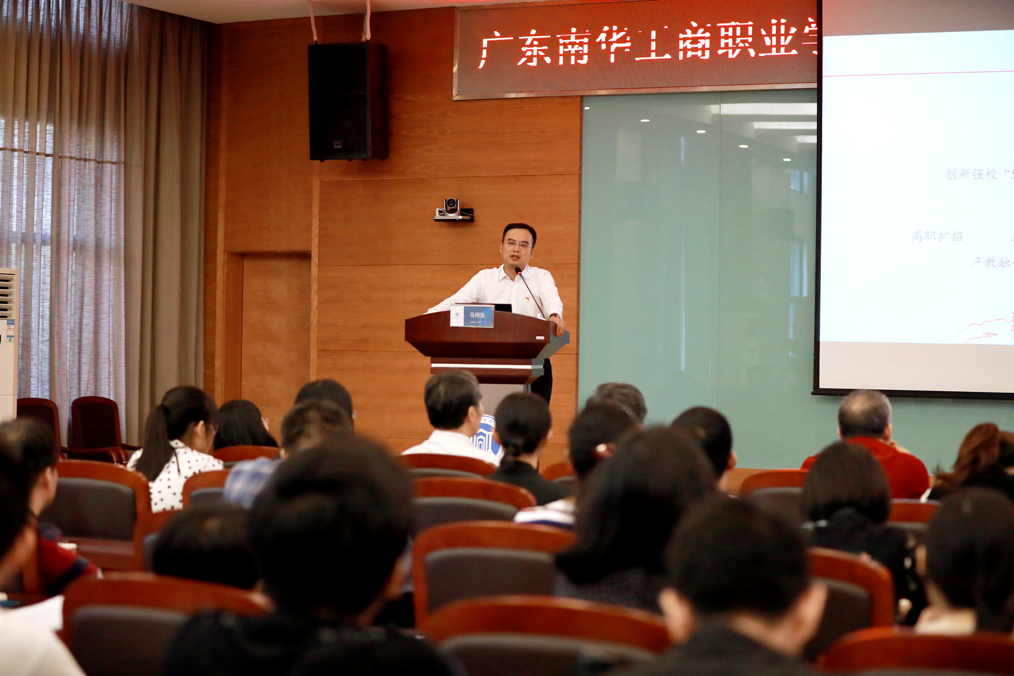 按照学校“不忘初心、牢记使命”主题教育工作安排,11月1日下午,学校党委书记、校长马栩生为全体党员干部讲授了一堂题为《牢记初心使命 奋力开创学校党建工作新局面》的专题党课。省总工会党组第二批主题教育指导组成员李思蕴、刘杰敏出席专题党课。
