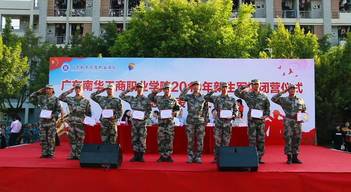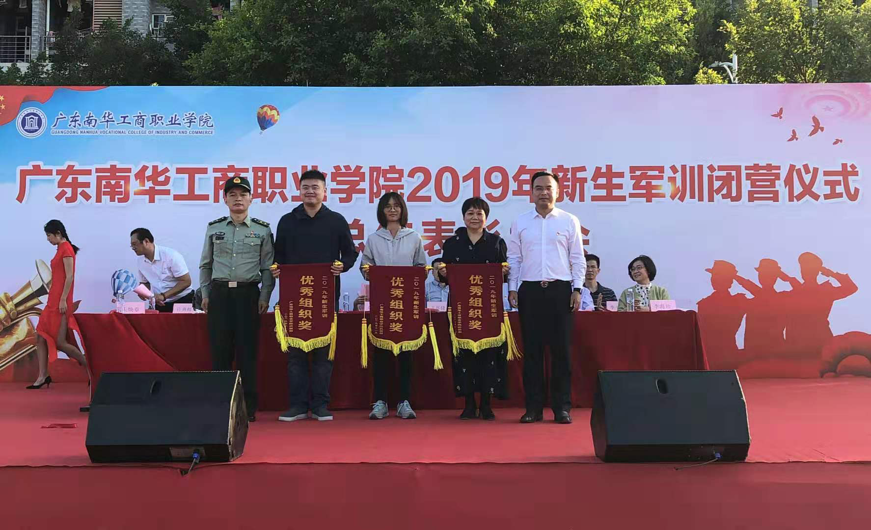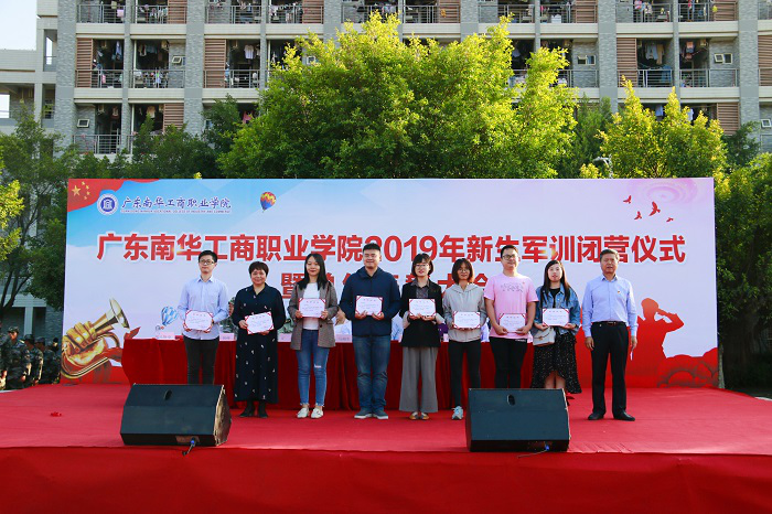 2019年11月8日下午,我校2019年新生军训闭营仪式暨总结表彰大会在清远校区足球场隆重举行。党委书记、校长马栩生,学校党委委员、副校长王满元,花都区人武部副部长旷斌,军训团团长王朝峰,各二级学院负责人、学生工作处副处长许典榕、李小宁以及全体教官和4397名受训新生参加了大会。大会由学生工作处副处长许典榕主持。