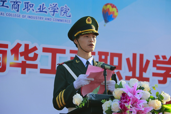 军训优秀学员代表——陈伟健同学发言。他表示:军训期间,他因为集体氛围、军事训练,而变得更加坚毅更加热爱祖国。他将把在军训中学到的知识运用于学习生活中,更会将这种吃苦耐劳的精神延续下去。