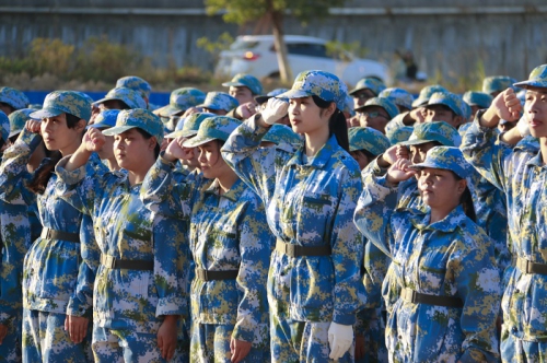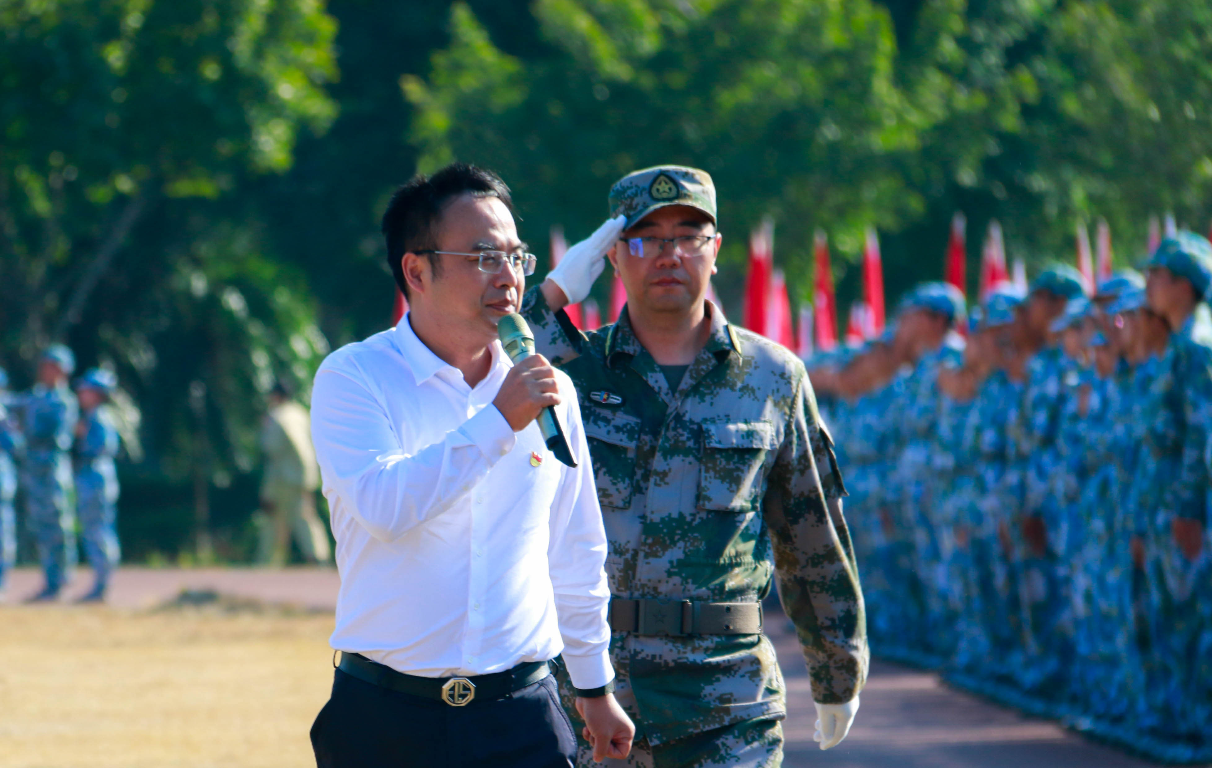 党委书记、校长马栩生在总教官的陪同下检阅军训队伍。一声声“同学们好”、“同学们辛苦啦”饱含了学校领导对受训新生的亲切慰问和关怀,一句句掷地有声的“书记好”、“为校争光”充分展示了受训新生坚定不移的决心和昂扬向上的精神风貌。