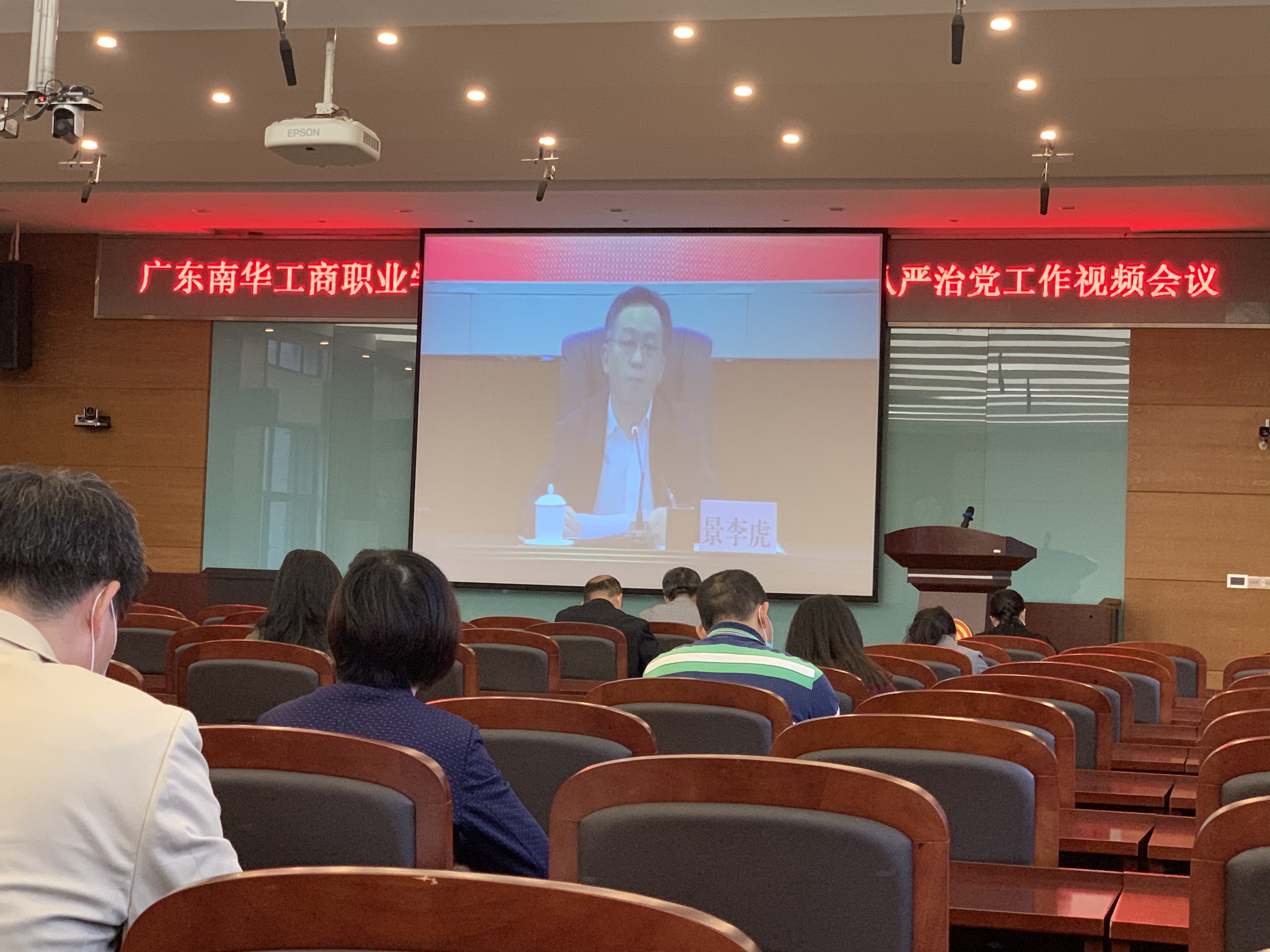 4月23日下午4点30分,广东省教育厅、中共广东省委教育工委召开2020年全省教育系统全面从严治党工作视频会议,我校分会场设在天河校区行政楼4楼报告厅,学校党委书记、校长马栩生,副院长王满元,纪委书记韦秀华,副校长唐晓林、严新以及学校纪委委员、各二级学院(部)、各部门主要负责人参加会议。