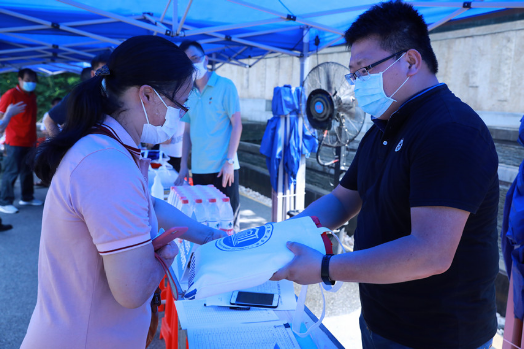 二级学院工作人员要提醒学生洗手消毒,测量体温,出示学生证或身份证,查看学生返校名单,确认是否属于返校学生,确认无误后,收取学生健康卡,提醒扫描“我在校园”小程序二维码,发放爱心包、矿泉水并做好登记签名。