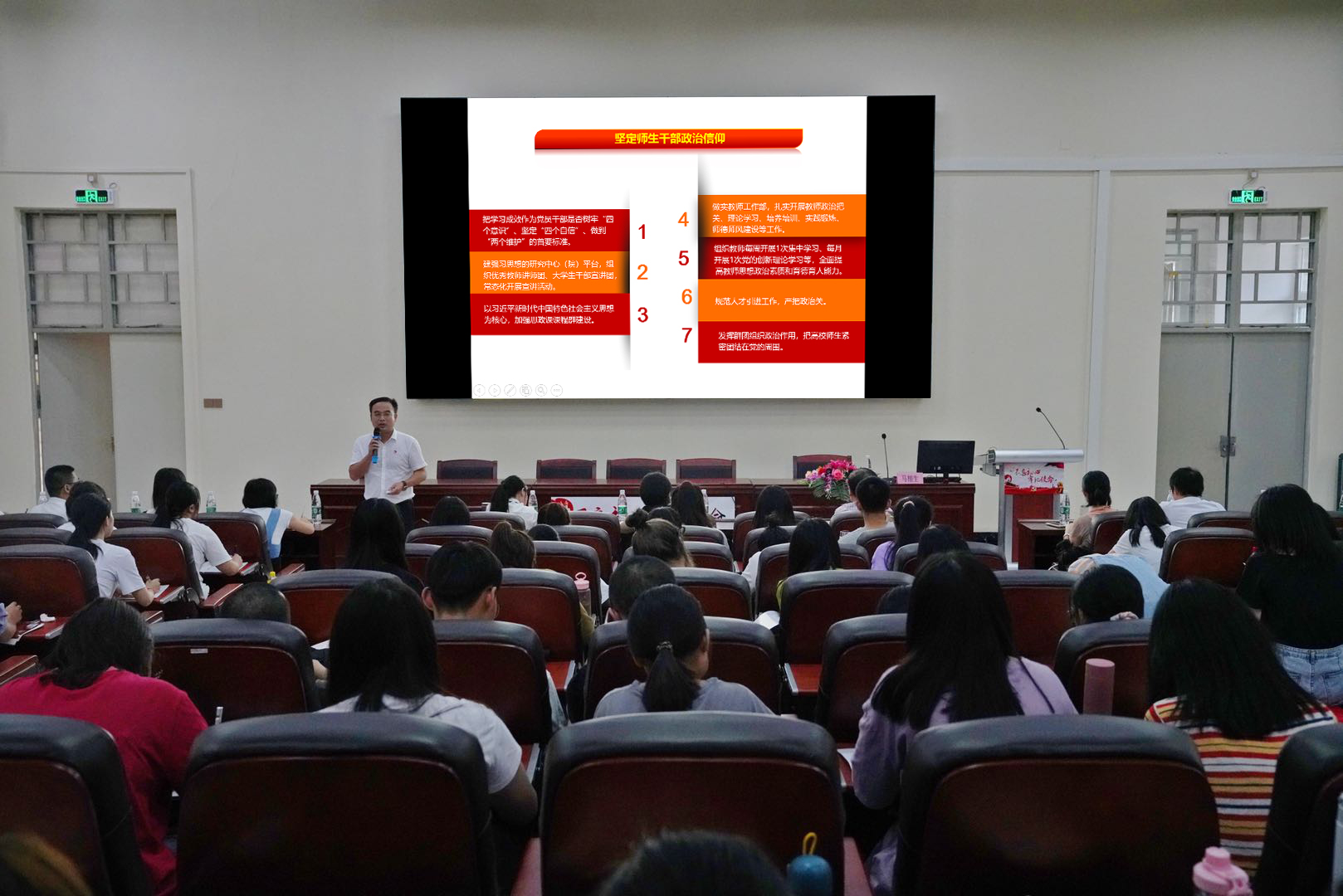9月16日,学校党委书记、校长马栩生为清远校区2018、2019级学生讲授题为《以党的政治建设为统领,加强南华党的政治建设》的“第一堂思政课”。