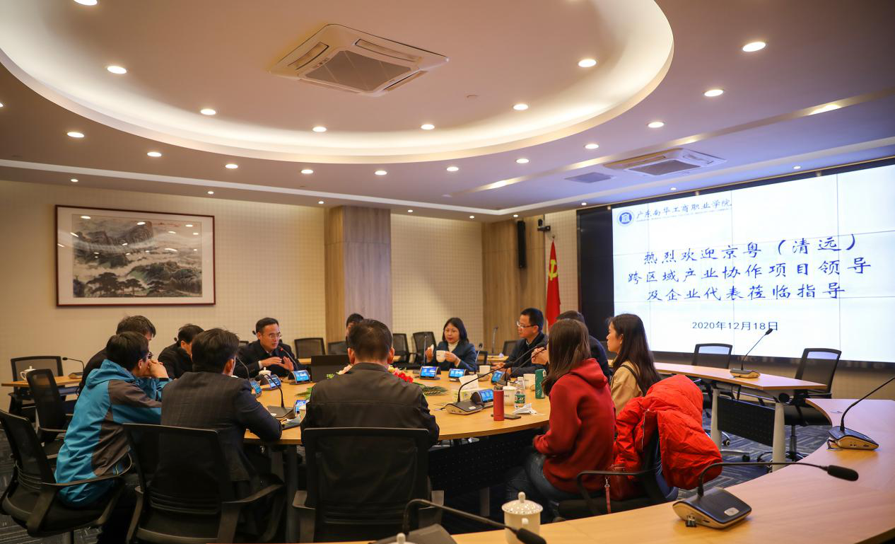 12月18日,京粤(清远)跨区域产业协作项目领导及企业代表来我校清远校区考察交流。学校党委书记、校长马栩生会见了来宾,双方进行深入座谈。副校长严新,教务处负责人参加了座谈。