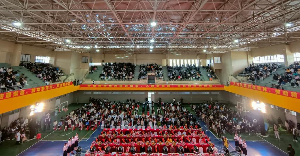 此次劳模工匠进校园开场由“2020年全国劳动模范”“全国道德模范”“全国五一劳动奖章”获得者陆建新做《以奋斗创造幸福,用实干成就梦想》主题报告,陆建新分享了自己的成长历程:现年55岁的陆建新是中建科工集团有限公司华南大区总工程师,自1982年来到深圳投身建设事业以来,他从最基层测量员做起,辗转工作于国内外多座城市,参与了深圳国贸大厦、地王大厦、平安国际金融中心等46项工程施工,创造了“三天一层楼”的“深圳速度”,参建工程总高度达3600余米,被誉为“中国摩天大楼第一人”。从基层测量员成长为国家劳动模范,陆建新始终坚守在建设一线,刻苦钻研施工技术与管理,不断攻克各类施工难题,创造了多项世界领先的施工技术。全校2000余名师生代表齐聚学校体育馆,认真聆听。