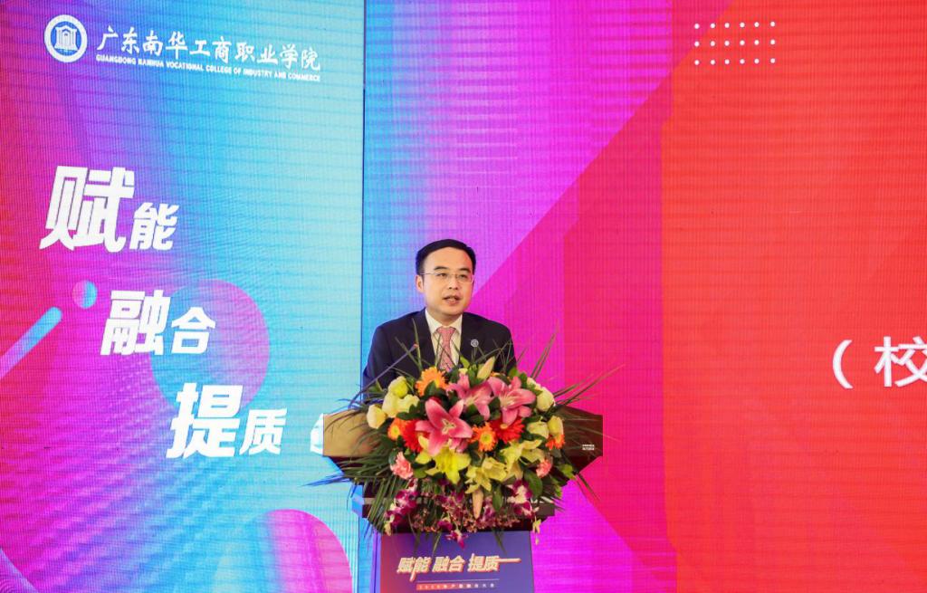 大会第五环节,是《广东南华工商职业学院产教深度融合专项促进办法》发布。学校教务处负责人蔡宏标表示,《办法》致力于将南华打造为国内一流产教融合新高地,产教深度融合示范校,学校将建立紧密对接产业链、创新链的专业集群,加快打造一批特色高水平现代产业学院,构建“当地离不开”产教融合新生态,面向产教融合共同体开展培训服务,探索产教专创双融合分级递进培养模式,为深度产教融合提供全方位制度支持及保障。