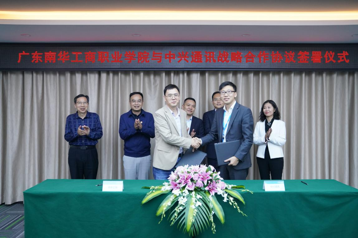 4月15日,深圳大梅沙中兴通讯学院宾主尽东南之美、其乐融融。我校经过与中兴通讯公司近半年多轮磋商,终于达成战略合作协议。按照合作协议,校企双方将重点围绕党建共建、工会干部及职工培训、学生订单班及现代学徒制培养、鲁班工坊建设、5G+产业学院建设、劳模德育导师聘任、工会共建等方面开展深度合作。学校党委书记、校长马栩生,中兴通讯高级副总裁孙方平共同见证双方代表签约,为工会干部培训基地和广东工匠学院数字工匠培训基地揭牌,马栩生同时还为中兴通讯公司两名省、市劳模颁发了学校劳模德育导师聘书。