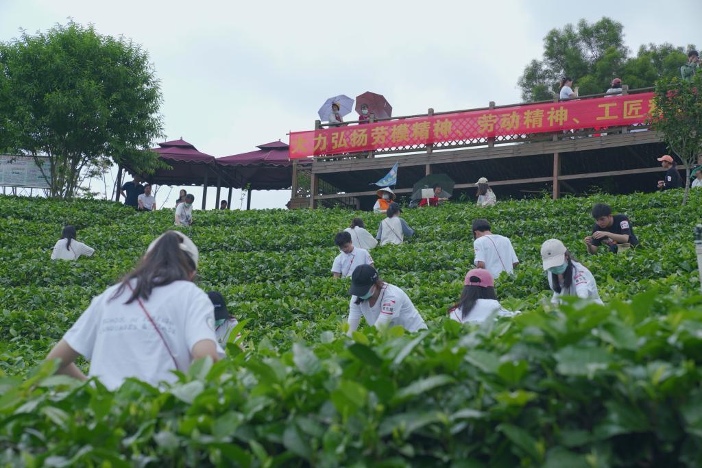 为深入学习贯彻习近平总书记在全国劳动模范和先进工作者表彰大会上的讲话精神,落实中共中央、国务院《关于全面加强新时代大中小学劳动教育的意见》,充分发挥劳动模范示范引领作用,2021年4月24日,在五一国际劳动节到来前夕,学校在英德市组织开展了“劳模引航劳动筑梦——迎五一我和劳模同劳动”劳动教育实践活动。活动邀请了全国劳动模范张重阳、张秋华,全国五一劳动奖章获得者贺金生,广东省劳动模范张扬娣,广东省五一劳动奖章获得者王原鹏等带领学校50名学生参与采茶劳动。英德市总工会副主席廖宇红,英德市茶行业协会秘书长罗淑贤,英德市英州红茶业有限公司副总经理李亚强,学校党委书记、校长马栩生、副校长王荣光及70多名师生代表参加了活动。