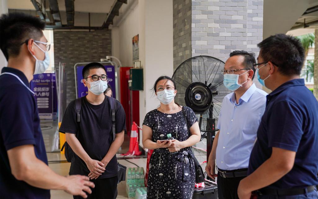 清城区委书记邱泽军莅临我校现场指导核酸检测,他称赞本次核酸检测组织工作反应迅速,现场工作人员和志愿者都尽职尽责,各项工作高效有序。副校长唐晓林到现场检查工作并慰问工作人员,并对辛勤付出的工作人员和志愿者表示感谢。