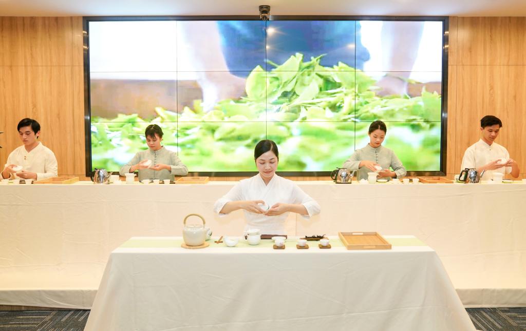 (劳模张扬娣带领学生进行茶艺表演)