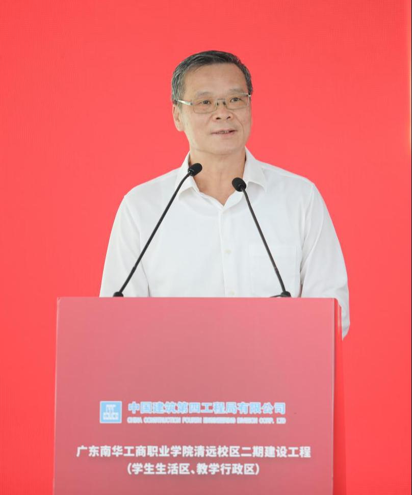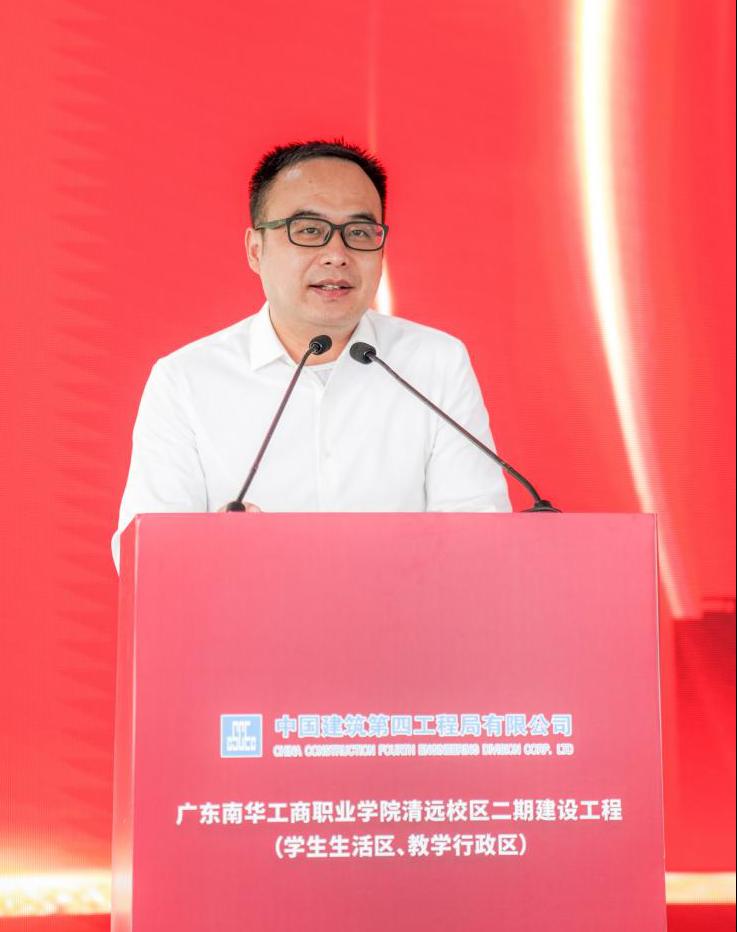 夏志华代表参建单位表示,广东南华工商职业学院清远校区二期建设工程项目是中建四局在省职教城的首个校园建设项目,中建四局将竭尽全力保质量、保履约、保服务,加快施工进度,以创优为导向,树立精品工程意识,将项目打造成四局精品工程、样板工程,向广东省总工会、广东南华工商职业学院、清远市政府交上一份完美答卷。