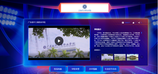 广东南华工商职业学院作为广东省代表院校参展,围绕博览会“大力发展适应新技术和产业变革需要的职业教育”的主题,以云学校、3D展厅为主要载体,以新技术应用场景展示、治理方式变革成果展示以及数字化教学资源展示为着力点,助力产业链、教育链双向融合,向全球展示了我校在教育服务、应用技术服务及人才培养培训等领域取得的成果。