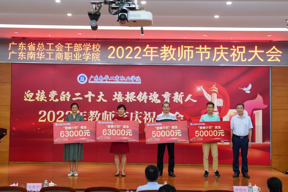 为激励那些在内涵建设中冲锋在前、攻坚克难的教师和团队,本次教师节大会,学校对“登峰计划”业绩突出的教师陈春慧、李婵、廖大强、彭晓丹、谭金凤、杨家成、姚文杰、赵玲霞、周怡燕进行了隆重表彰,“登峰计划”奖金最高得主(累计获得奖金12万元)廖大强老师发表获奖感言。
