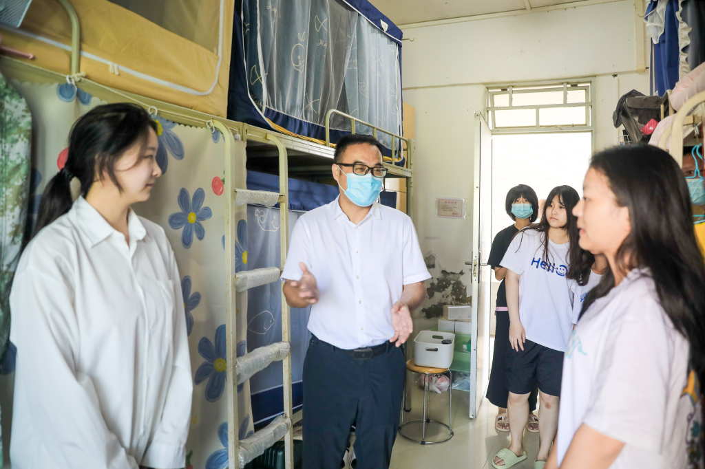 学校领导时刻关心着学生的衣食住行及身心健康情况。“今天核酸做了吗”“饭堂伙食怎么样”“平常喜欢运动吗”“专业课怎么样”“有没有和师兄师姐联系”……在走访过程中,马栩生亲切地跟学生拉家常、畅谈职业规划、学习生活和运动爱好等,深入了解新生的住宿环境及设施设备情况,提醒同学们注意自身安全、防疫安全,鼓励同学们努力学习,提升专业技能,为校争光,以积极的心态面对疫情,同心战“疫”,守护南华平安。