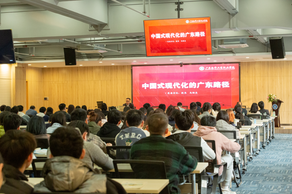3月8日,学校党委书记、校长马栩生以“中国式现代化的广东路径”为题,讲授2023年春季学期第一堂思想政治理论课,引导青年学子学习贯彻党的二十大精神,勇担新使命,奋进新征程,为广东发展奉献青春力量。