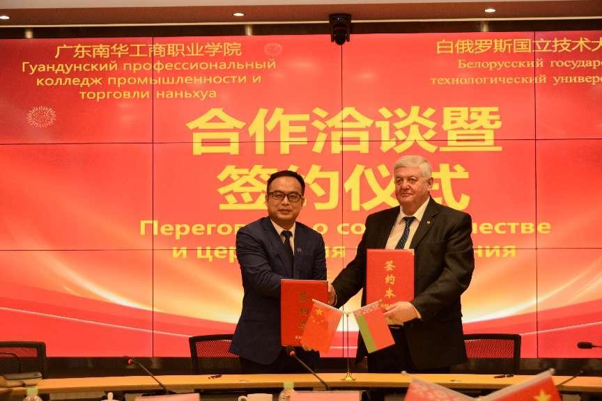 2023年4月27日,学校与白俄罗斯国立技术大学在清远校区举行合作洽谈暨签约仪式,白俄罗斯国立技术大学校长伊戈尔·沃伊托夫,学校党委书记、校长马栩生,副校长唐晓林参加洽谈及签约仪式,党委委员、广东工匠学院执行副院长黄玉良主持会议。