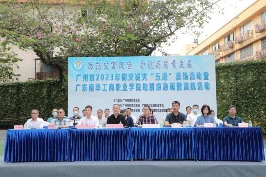 4月28日,以“防范灾害风险,护航高质量发展”为主题的广州市2023年防灾减灾“五进”首场活动暨广东南华工商职业学院地震应急疏散演练活动在我校天河校区拉开序幕。广州市减灾办副主任、市应急管理局一级调研员李汉超、处长王建苗、广州市地震局局长陈燕玲、天河区应急管理局副局长鹿启为、我校党委副书记、副校长严新、兴华街道办事处、兴华派出所、苏庄社区等单位领导出席本次活动。