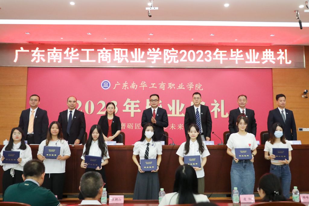 学校党委委员、学生工作部部长余喜文宣读《关于表彰广东南华工商职业学院2023届优秀毕业生的决定》,授予390名同学“优秀毕业生”荣誉称号。