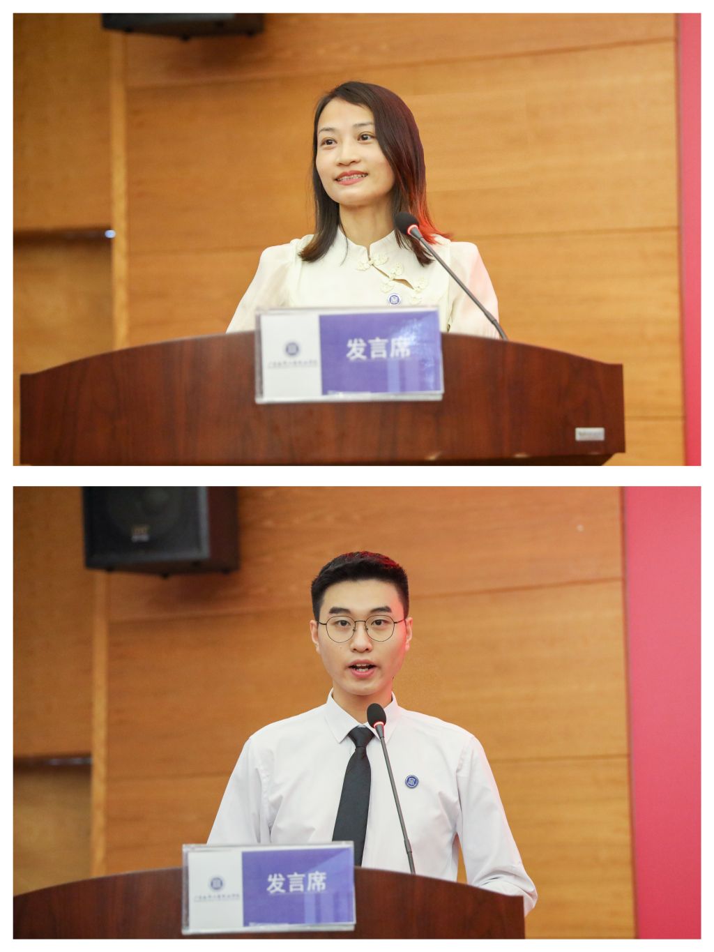 (教师代表马佩佩老师) (毕业生代表施俊钗同学)