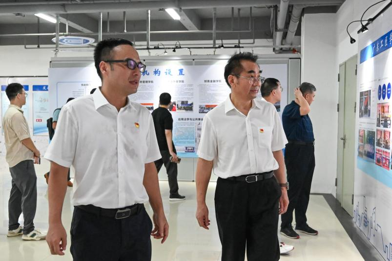 潘享清一行参观我校清远校区,实地了解学校建设及发展情况,考察国匠楼大师工作室,了解学校“三种精神”引领的“三特一全”育人体系,参观学校劳模工匠展、校史展,对学校的商科高职高质量发展成果给予高度评价。