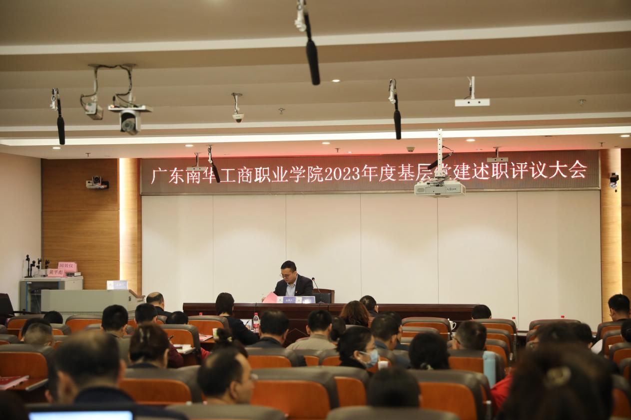 2023年度抓基层党建工作述职评议考核通过实绩考核和会议述职评议相结合的方式开展。各基层党组织按照实绩考核指标准备佐证材料,学校党委通过交叉检查的方式进行评分,党组织书记对全年抓党建工作情况进行认真梳理总结,形成书面报告,并以个人名义述职。参会代表通过填写述职评议考核测评表进行现场评议。