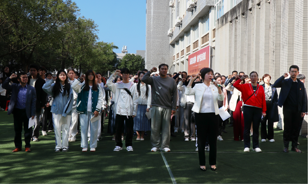 启动仪式上,党政办党支部、博雅教育学院(应用法学与公共事业学院)党总支、学生工作党支部、总务处党支部、纪委工会党支部、学前教育学院党总支部、体育部党支部等党员教师与学生代表近100人现场合唱宪法主题歌曲《宪法伴我们成长》,并开展宪法宣誓活动,黄一梅带领全体师生庄严宣誓。