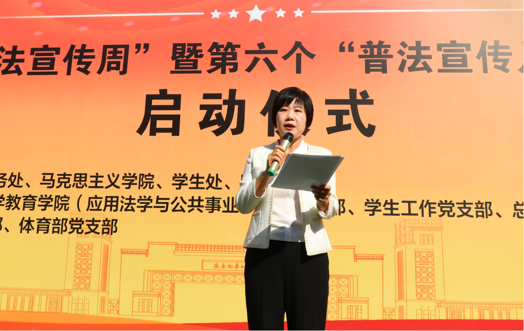 2024年12月4日是我国第十一个“国家宪法日”,学校以“弘扬宪法精神,维护宪法权威”为主题,在清远校区教学楼南侧开展2024年“宪法宣传周”暨“普法宣传月”系列活动启动仪式,学校党委委员、纪委书记黄一梅出席启动仪式并致辞。