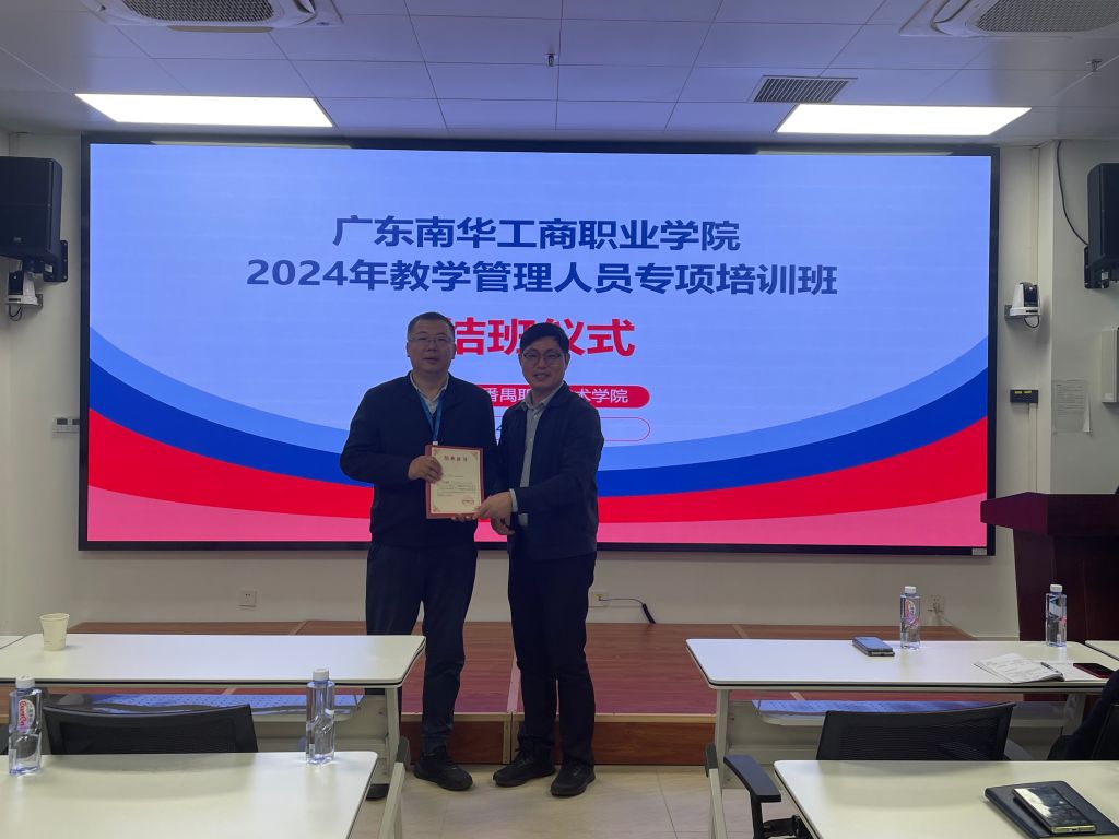 结班仪式上,广州番禺职业技术学院党委委员、副校长吴强对本次培训圆满完成致以衷心祝贺,他指出教学管理工作涉及方方面面,是学校对外展示的核心基础,重要性不言而喻,期望两校能够在交流学习中集思广益、携手并进、共同成长。